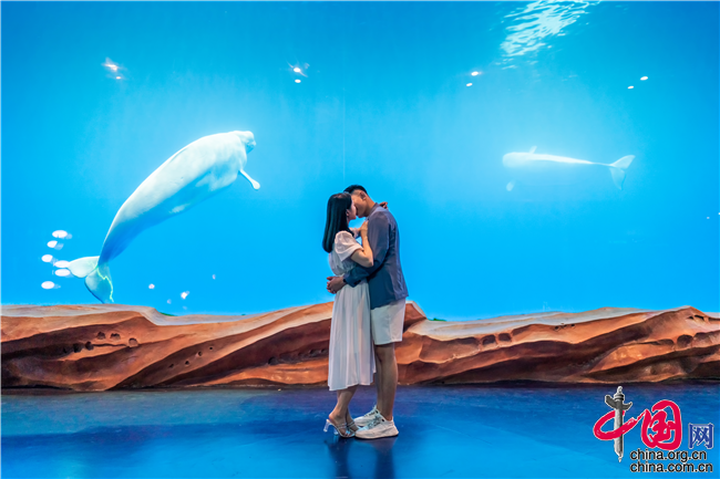 走進融創海世界,仿佛潛入了深海,海洋中的生物精靈會徐徐向你游來,瞧,白色鯨魚在自由自在嬉戲游動;看,精彩的海豚表演;噓,屏住呼吸,看透明水母一呼一吸向上游動,就像是在跳舞。