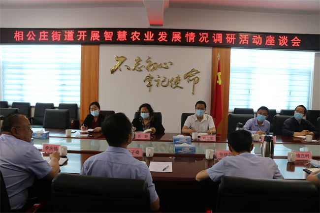5月19日上午,章丘相公莊街道召開智慧農業發展情況調研活動座談會,對智慧農業發展的重要工作進行討論研究,以促進農業“智慧化”、“數字化”,推動鄉鎮經濟文化發展。濟南市農技推廣服務中心智慧農業部部長楊紅軍、市農技推廣服務中心高級工程師蘇靜、街道黨工委副書記、辦事處主任李子奇、副主任張繼昌、街道領導干部及梭莊村黨總支書記、村委會主任劉備、魯供豐農負責人參會。會議由李子奇主持。