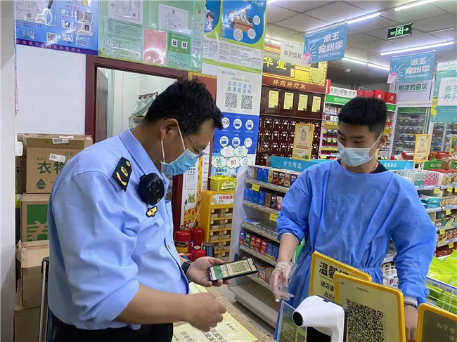 督導業戶嚴格落實“三驗一掃”、嚴格執行“門前五包”,確保疫情防控常態化下的各項工作取得實效。