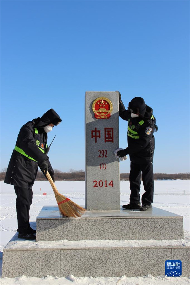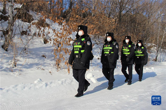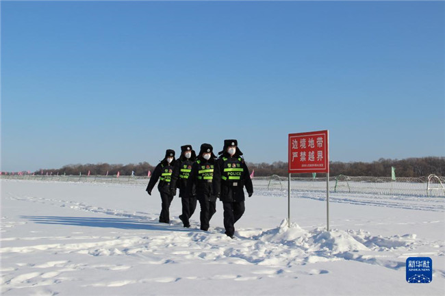 1月22日,雞西邊境管理支隊虎頭邊境派出所的移民管理警察在邊境巡邏。