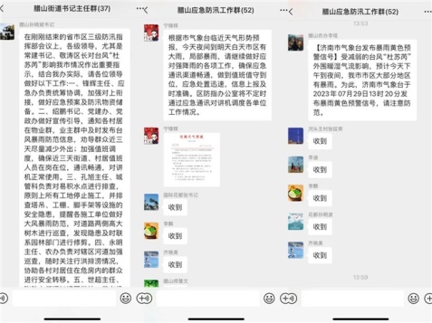 為進一步做好臺風“杜蘇芮”防御工作,槐蔭區臘山街道第一時間傳達省市區防汛指揮部會議精神,對街道防汛防臺工作進行再研判、再分析、再部署,全力以赴抓好應急處置工作。
