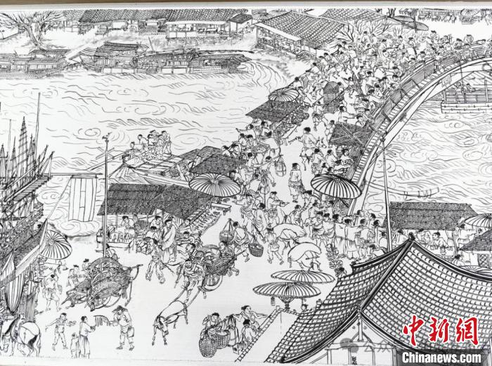 近日,在浙江嘉興海鹽,一幅頗具本土特色的《清明上河圖》引人關注。當地國家級非遺嘉興灶頭畫傳承人趙生波,跨越4個月,運用本地灶頭畫技藝,以水墨的形式再現了這幅傳世名作。