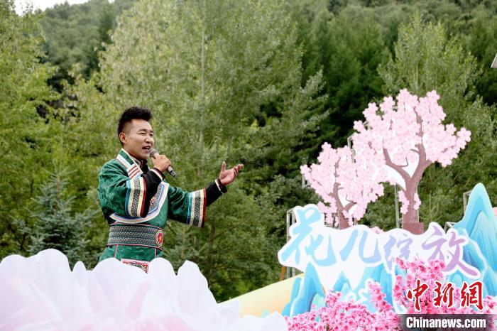 圖為花兒歌手演唱花兒串燒《娘娘山上把花兒漫》。張添福 攝
