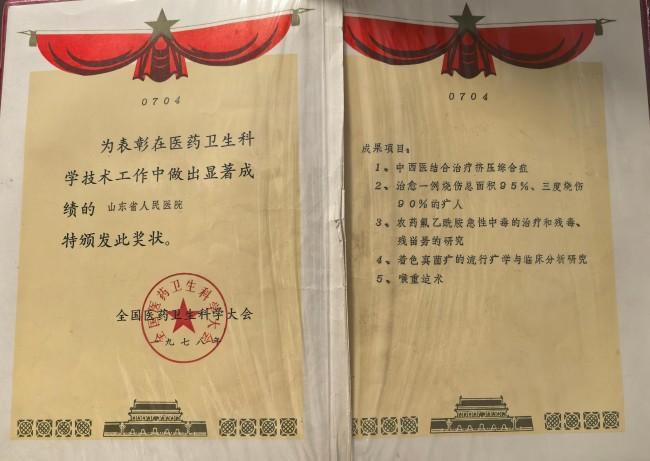 1986年,戴文麗、王振國關于《著色霉菌病的治療和病理學研究》獲得山東省科學技術進步二等獎。