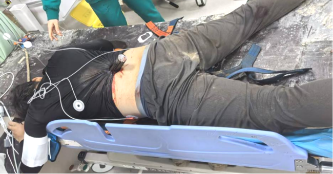 該患者不幸從高處墜落,被一根粗長的鋼筋從后背貫穿腹部,傷情極其危重,生命垂危?;颊弑凰椭玲t院時已處于休克邊緣,情況萬分危急。面對這一罕見、復雜且極高風險的穿透傷,膽胰外科迅速啟動響應機制,牽頭組織創傷中心、泌尿外科、血管外科等多學科團隊協同救治。