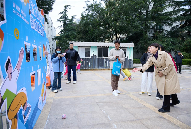一旁的“安全投‘防’大挑戰”同樣人氣爆棚。志愿者將沙包分發給居民,投擲區的靶心則對應不同知識點類別。居民們手持沙包,瞄準靶心投擲,每命中一個靶心,志愿者便會詳細講解對應知識點,讓大家在投擲的樂趣中加深記憶。