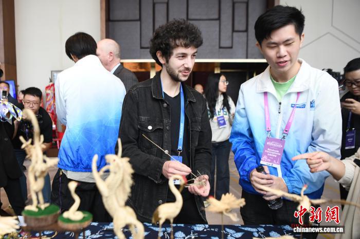 長沙棕葉編吸引參加論壇的法國友人前來參觀。中新網記者楊華峰攝