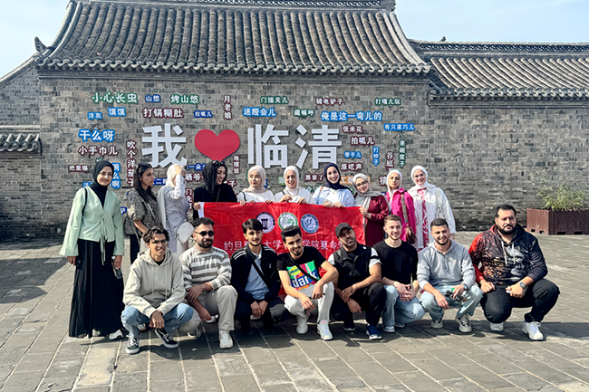 (聊城大學2025年“漢語橋”約旦青年學生來華團組在臨清運河鈔關合影)