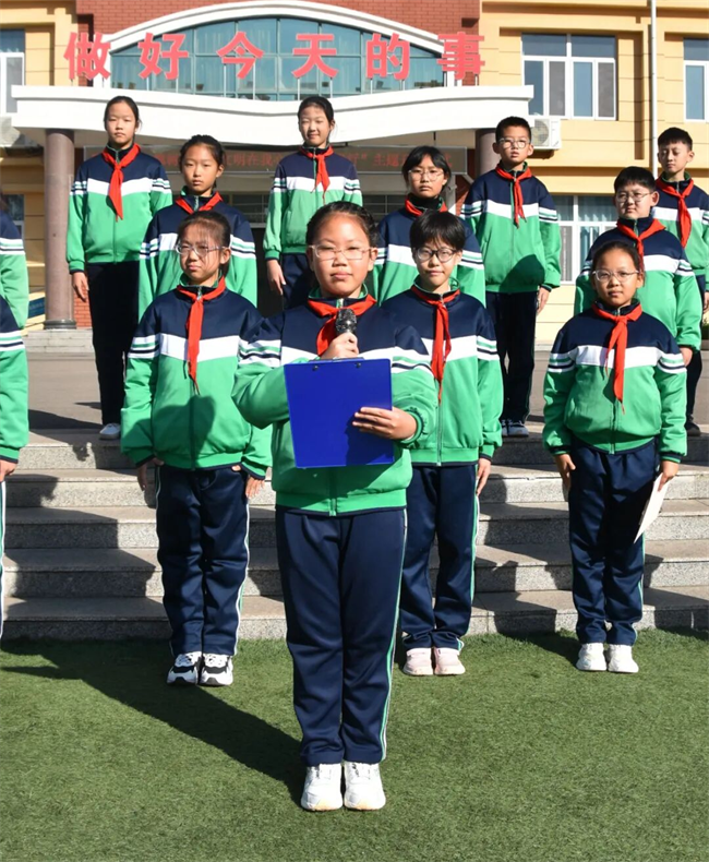 魯礦一小升旗儀式由五年級一班承辦,李怡寧同學以“校園文明”為核心,將文明禮儀具象化:從“進校園主動向師長問好”“課堂上舉手發言守秩序”,到“課間走廊輕聲慢步不打鬧”,把抽象的文明準則轉化為看得見、學得來的日常行為。
